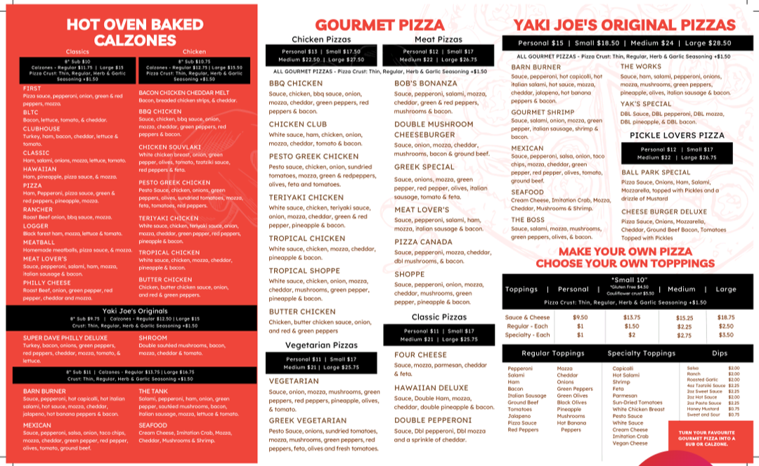 The menu at Yaki Joe's Pizza offers a straightforward, casual dining experience that centers around well-crafted pizzas and familiar Italian favorites. It’s the kind of place where simple, hearty meals come together with a relaxed atmosphere—perfect for sharing with friends or grabbing a comforting bite on a laid-back evening.